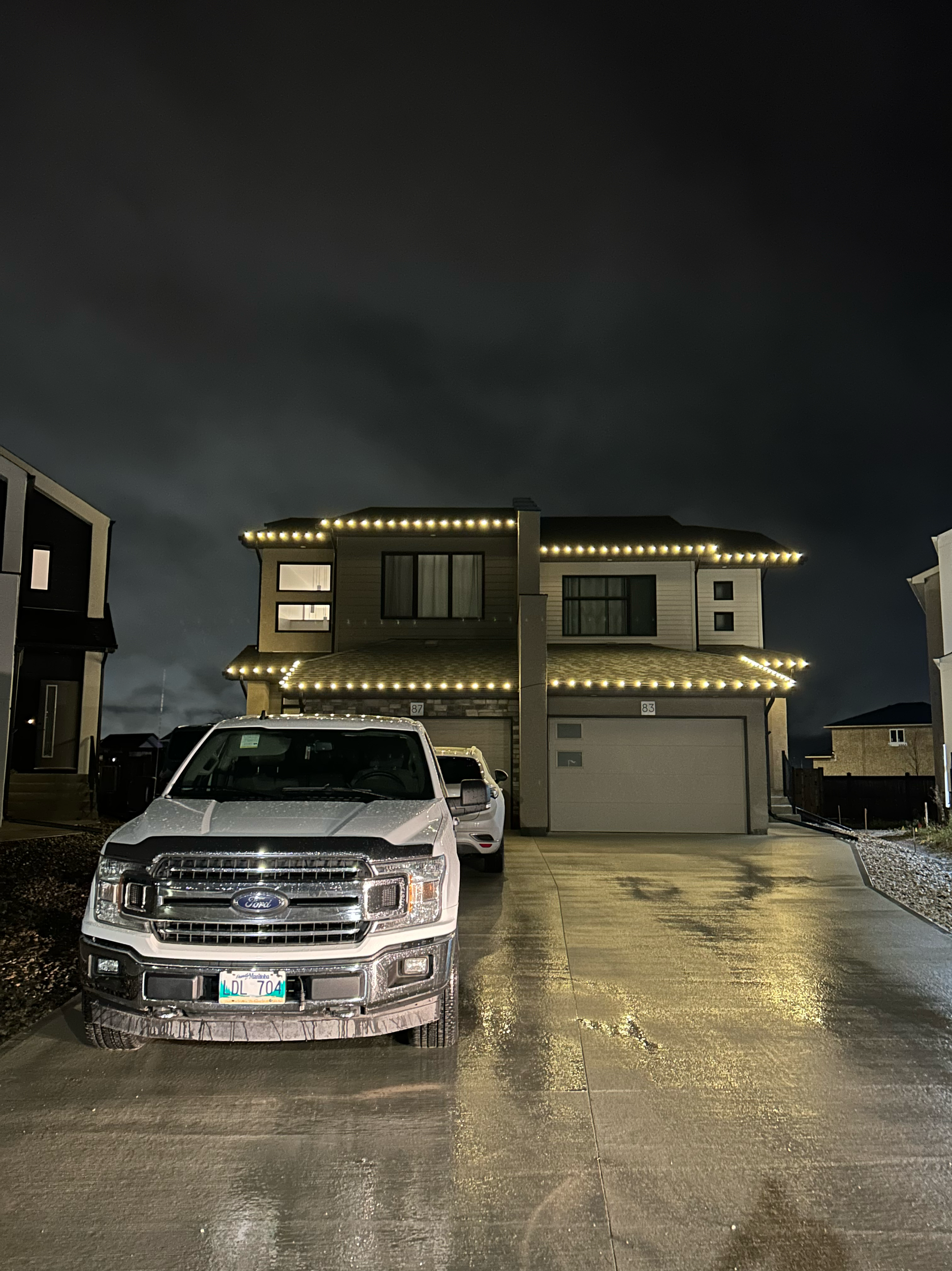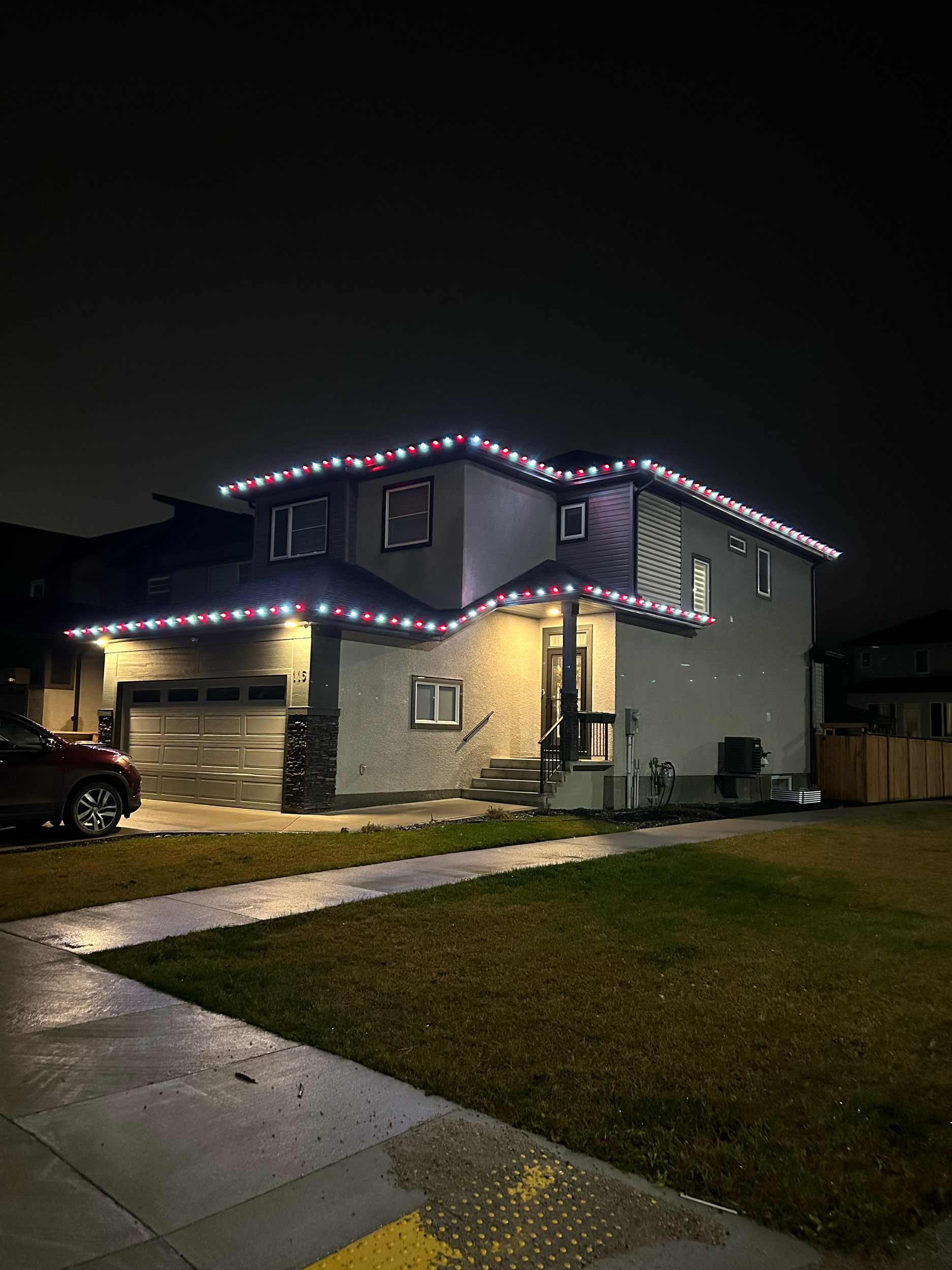 The most popular type of Christmas light installation. We highlight all eavestroughs and rooflines on the front face of your home for a crisp look! If you would like the sides and back of the home done as well we can add those sections too! For the 2025 season the colour options we are offering are Warm White (most popular), Multicolour, Blue/Cool White and Red/Cool White. (Subject to availability)
